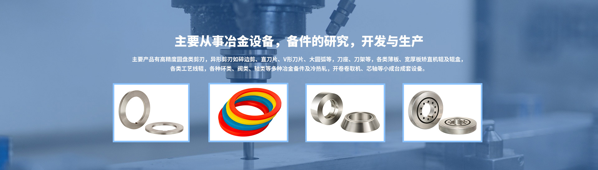 主要產(chǎn)品有高精度圓盤(pán)類(lèi)剪刃,異形剪刃如碎邊剪、直刀片、V形刀片、大圓弧等,刀座、刀架等,各類(lèi)薄板、寬厚板矯直機(jī)輥及輥盒,